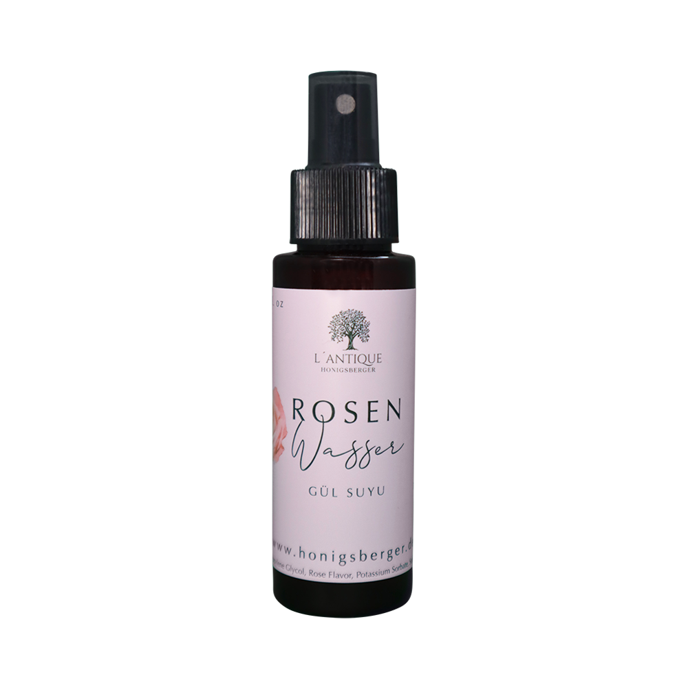 Inhaltsstoffe: Wasser, Propylenglykol, Rosenaroma, Kaliumsorbat, Natriumbenzoat, Polysorbat 20.